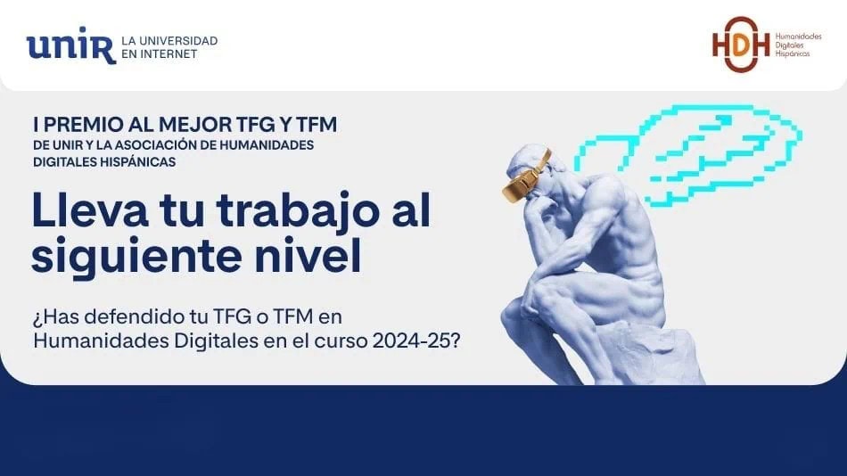 La Universidad Internacional de La Rioja (UNIR), en colaboración con la Sociedad Internacional de Humanidades Digitales Hispánicas (HDH), convoca la primera edición del Premio al mejor Trabajo de Fin de Grado (TFG) y mejor trabajo de Fin de Máster (TFM) en Humanidades Digitales.