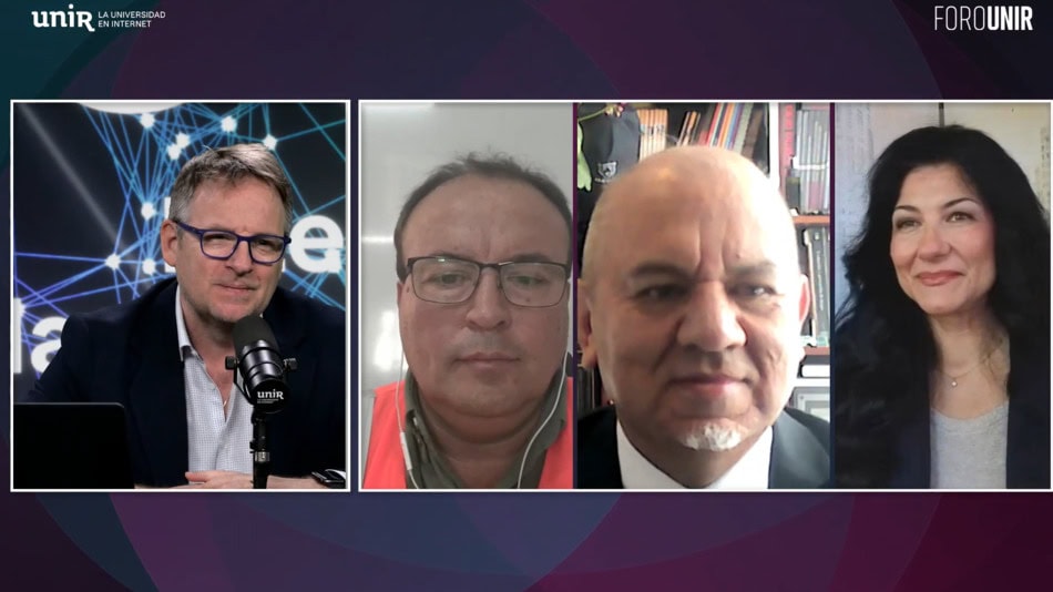 Participaron en Foro UNIR Natalia Herrero Tomás, profesora del Derecho del Trabajo y de la Seguridad Social en la Universidad de Zaragoza (España) y doctora en Derechos Humanos y Libertades Fundamentales; María López, CEO de COAXIONIA; Luis Marcelo Sánchez León, presidente de la Asociación Ecuatoriana de Seguridad y Salud en el Trabajo; y Byron Andrade Haro, senior manager de HSE – Mining. La sesión estuvo moderada por el director de Foro UNIR, Jorge Heili.