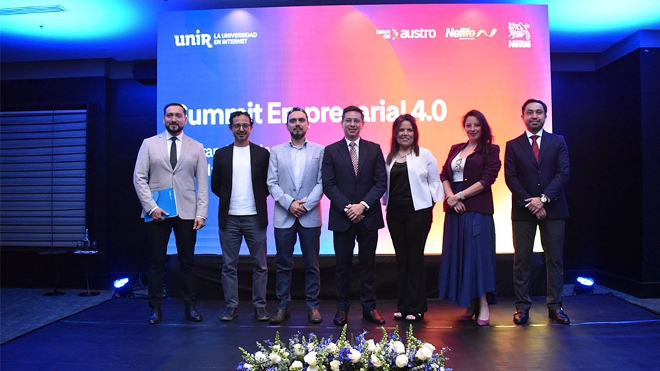 La Universidad Internacional de La Rioja (UNIR), en colaboración con Nestlé, Banco del Austro y Netlife, celebró con éxito en el Hotel Sheraton de Quito el Summit Empresarial 4.0: Liderar en la era de la IA.
